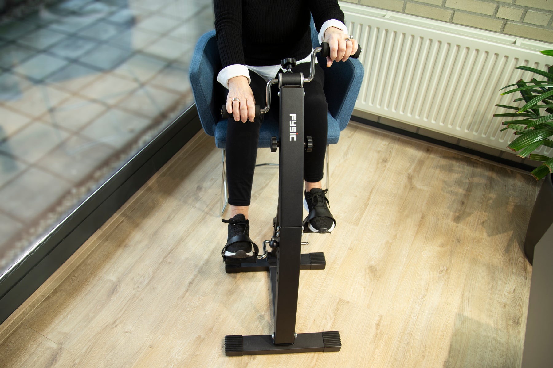 Stärken Sie Ihre Arme und Beine auf verantwortungsvolle Weise von Ihrem Stuhl aus mit dem Dualer Mobilitätstrainer FW15 von Fysic. Der Bewegungstrainer ermöglicht es Ihnen, aktiv zu bleiben, auch wenn die Bewegung schwerer fällt. Es stärkt Ihre Kondition und trainiert gleichzeitig Arme und Beine. Auch zur Unterstützung der Rehabilitation ist das Training mit dem FW15 ideal. Dieser Heimtrainer hat einen leicht einstellbaren Widerstand, so dass Sie auf Ihrem eigenen Niveau trainieren können.
