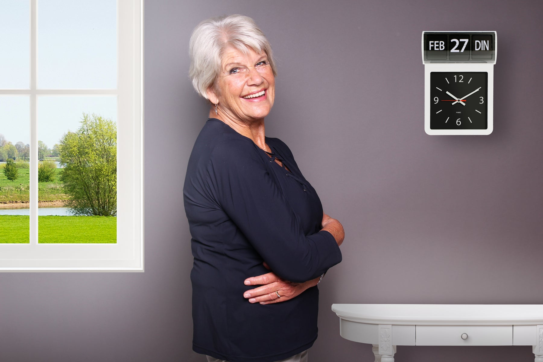 Demenz-Uhr wird auch Alzheimer-Uhr oder Kalenderuhr genannt und ist so konzipiert,