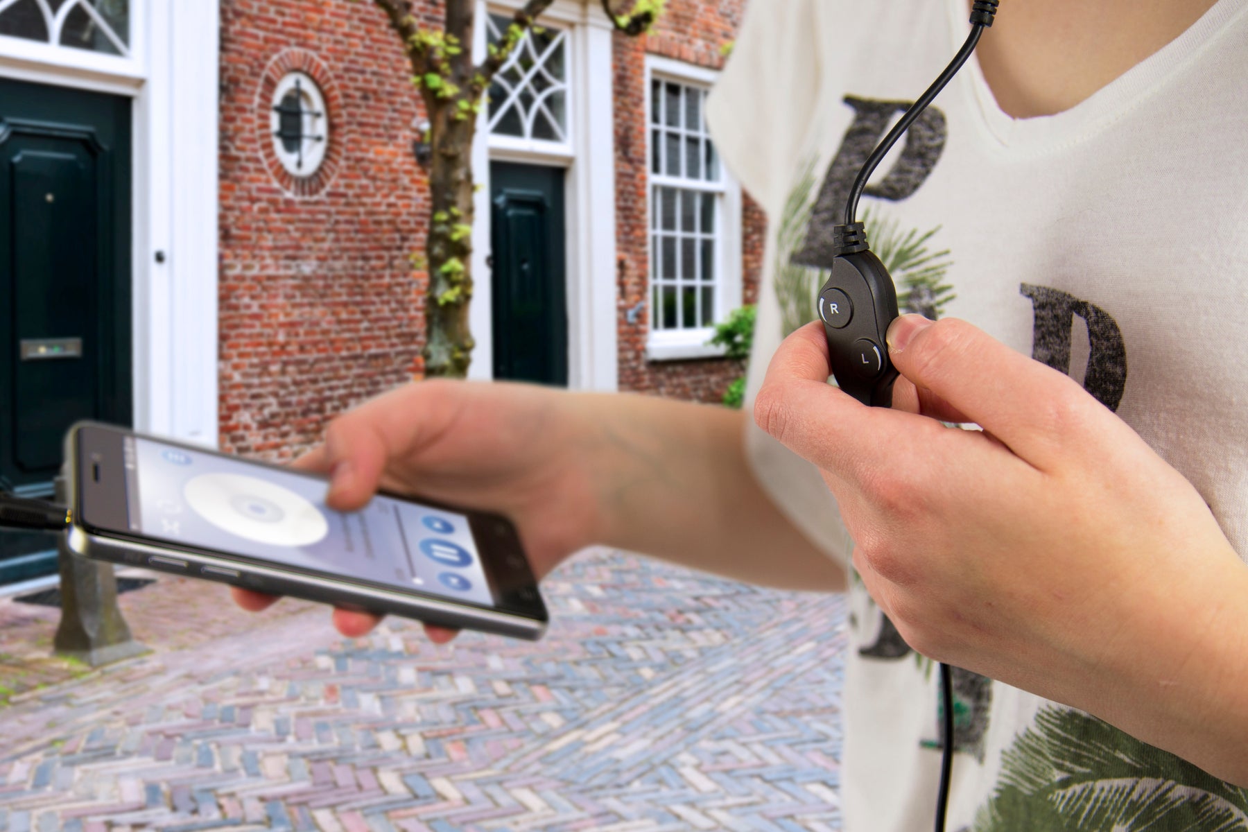 - Kopfhörer mit Lautstärkeregler (L+R)